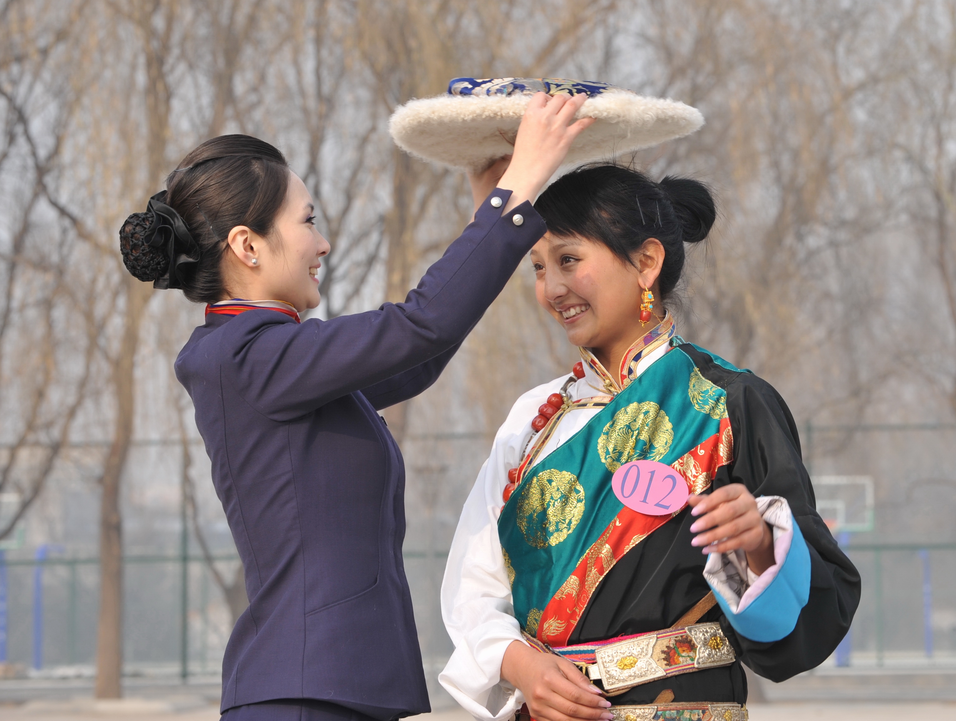 2007年起,中國東航在西藏持續(xù)做好航線運營,不僅在拉薩招聘當(dāng)?shù)貑T工,還在全國范圍內(nèi)招聘藏族乘務(wù)員,利用飛機(jī)客艙平臺開展藏語服務(wù)。