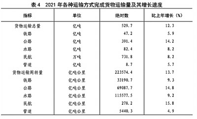 [29]貨物運(yùn)輸總量及周轉(zhuǎn)量包括鐵路、公路、水路、民航和管道五種運(yùn)輸方式完成量,2021年增速按可比口徑計算。