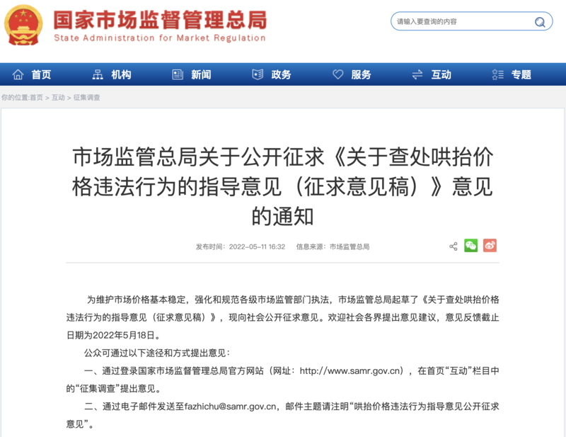 目前,《征求意見稿》全文已在市場監(jiān)管總局官網(wǎng)發(fā)布,意見反饋截止日期為2022年5月18日。