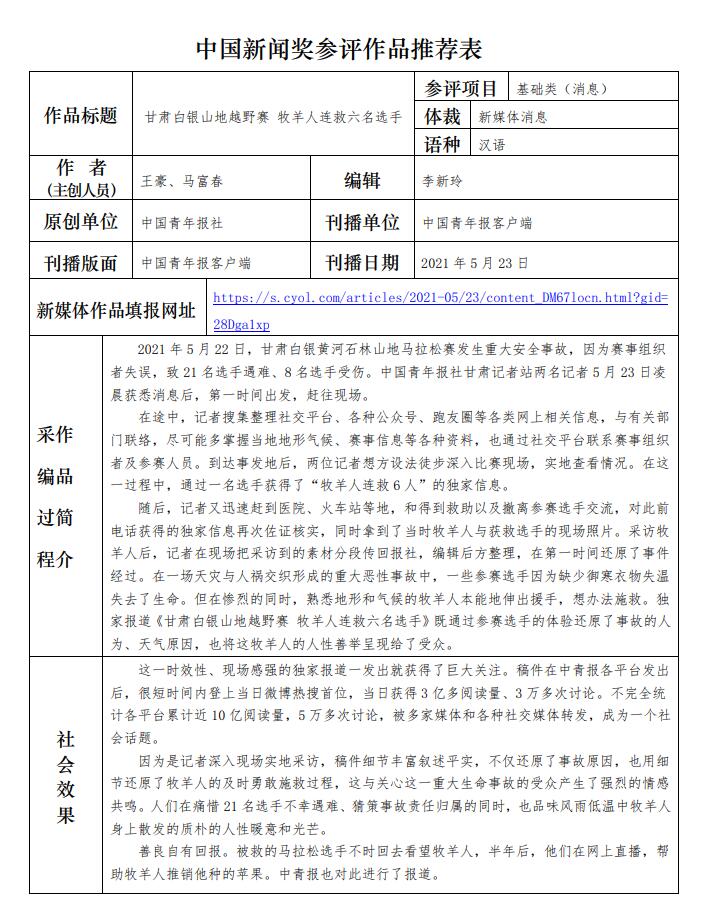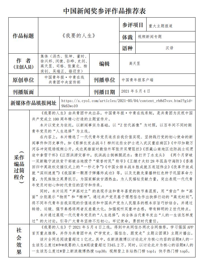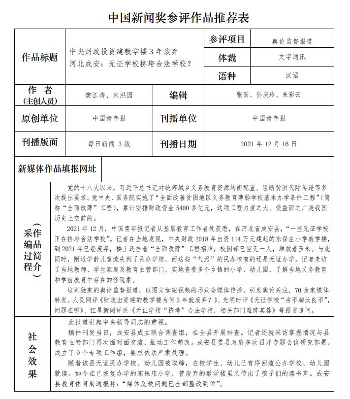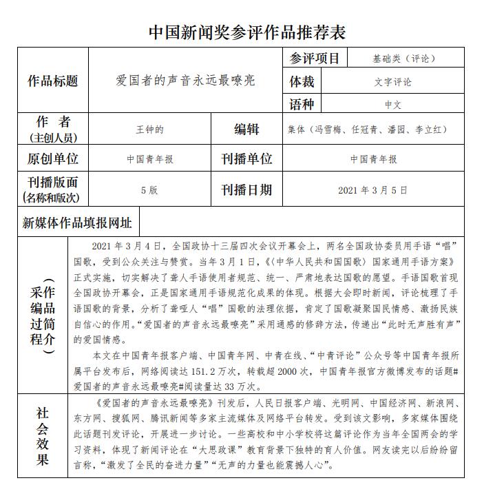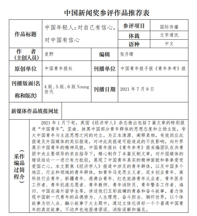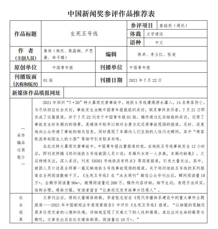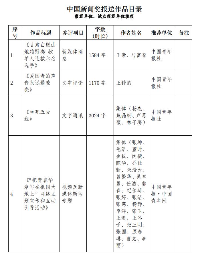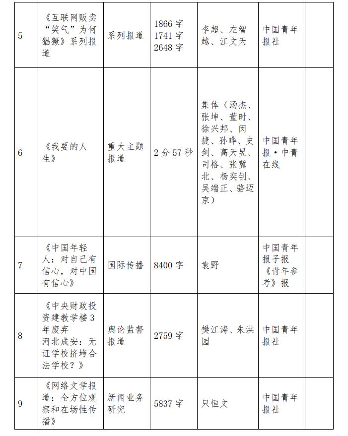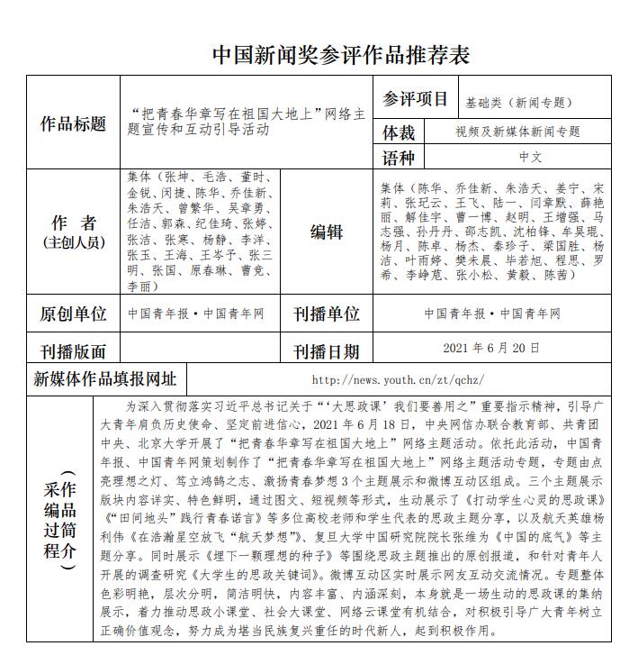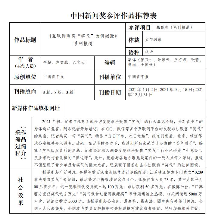 中國青年報(bào)社推薦參評第三十二屆中國新聞獎報(bào)送作品公示