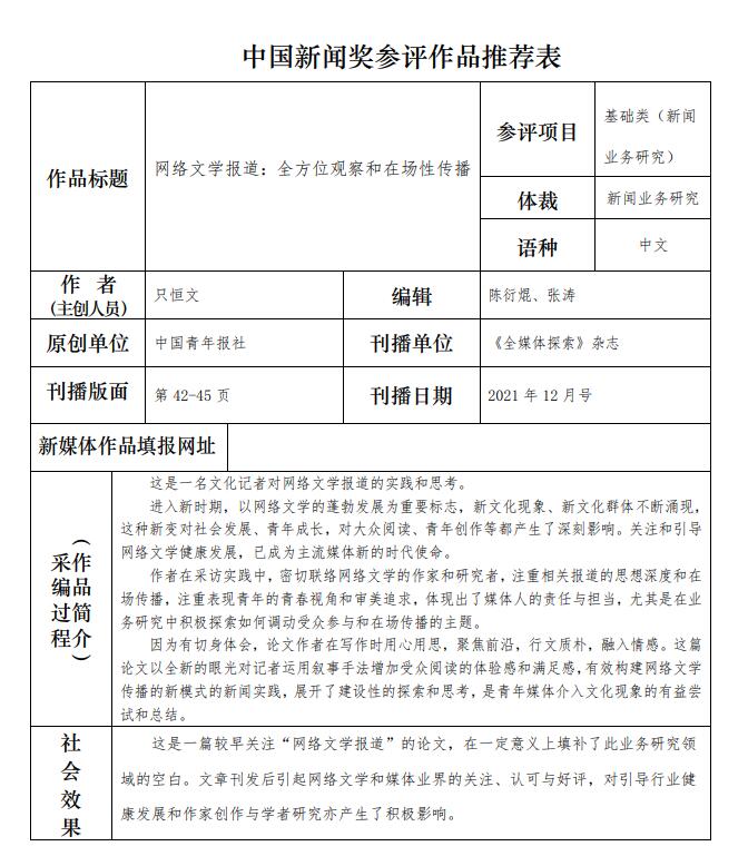 9. 《網(wǎng)絡(luò)文學(xué)報(bào)道:全方位觀察和在場性傳播》