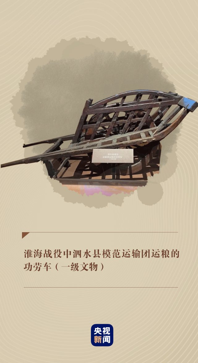 在中國共產(chǎn)黨歷史展覽館,靜臥著一輛淮海戰(zhàn)役中泗水縣模范運(yùn)輸團(tuán)運(yùn)糧的功勞車。它向人們講述著當(dāng)年硝煙彌漫的戰(zhàn)場上,人民群眾團(tuán)結(jié)一心,用一輛輛小車推出戰(zhàn)役勝利的感人故事。