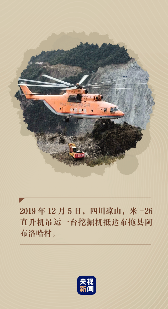 2019年11月30日,一架米-26直升機(jī)出現(xiàn)在村子上空。僅用八天時間,這架直升機(jī)成功將挖掘機(jī)、裝載機(jī)、潛孔鉆機(jī)一一運(yùn)到村里,朝著最后的一公里掘進(jìn)。