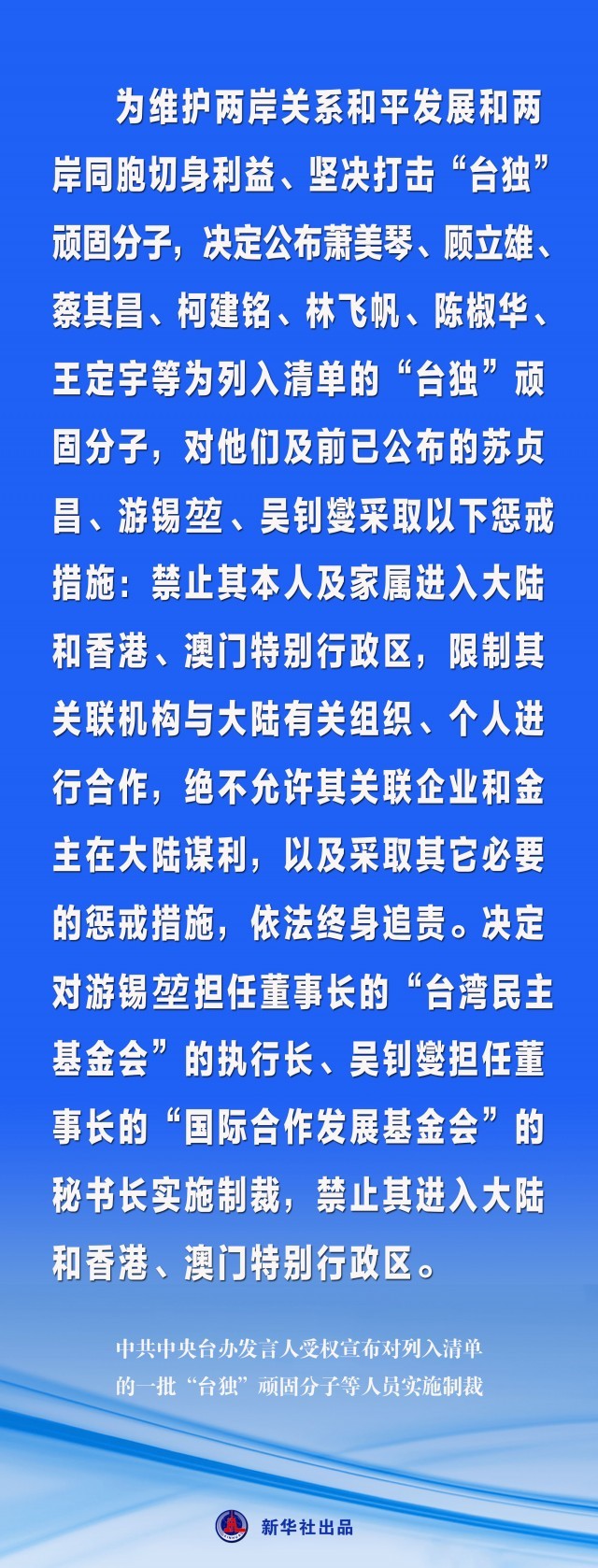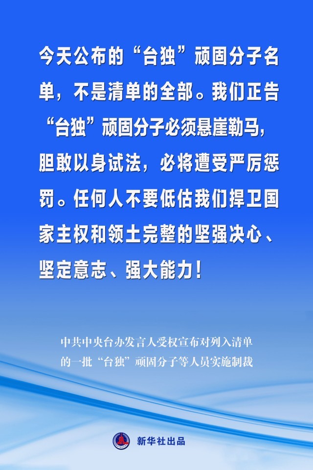 海報丨中共中央臺辦發(fā)言人受權(quán)宣布對列入清單的一批“臺獨”頑固分子等人員實施制裁
