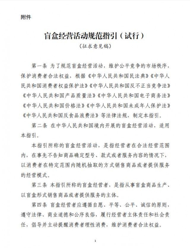 附件:盲盒經(jīng)營(yíng)活動(dòng)規(guī)范指引(試行)(征求意見(jiàn)稿)