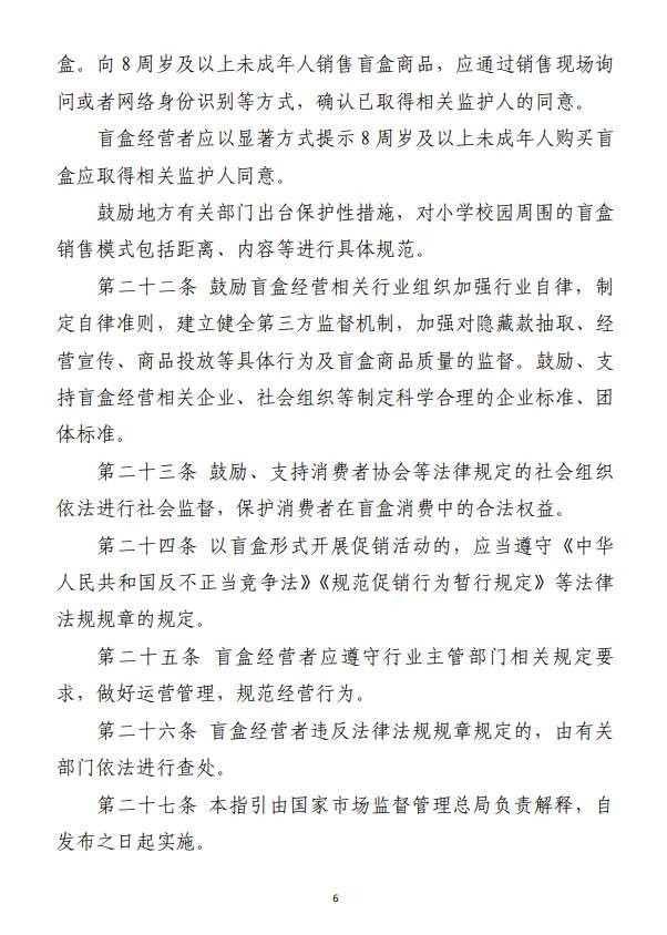 三、通過(guò)信函將意見(jiàn)郵寄至:北京市西城區(qū)三里河?xùn)|路8號(hào)市場(chǎng)監(jiān)管總局執(zhí)法稽查局,郵政編碼:100820,并在信封上注明“盲盒經(jīng)營(yíng)活動(dòng)規(guī)范指引公開(kāi)征求意見(jiàn)”字樣。