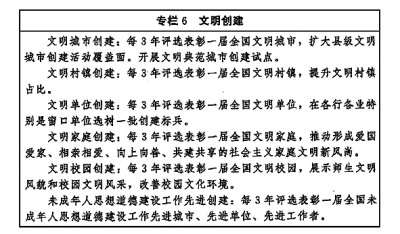 以實施文明創(chuàng)建工程為抓手,推動文明培育、文明實踐、文明創(chuàng)建不斷深入。創(chuàng)造性開展文明城市、文明村鎮(zhèn)、文明單位、文明家庭、文明校園和未成年人思想道德建設(shè)工作先進等精神文明創(chuàng)建活動,拓展新時代文明實踐中心建設(shè)。弘揚科學(xué)精神,深入開展愛國衛(wèi)生運動,深化文明餐桌行動和“光盤行動”,倡導(dǎo)文明健康、綠色環(huán)保的生活方式。健全志愿服務(wù)體系,廣泛開展志愿服務(wù)關(guān)愛行動。加強網(wǎng)絡(luò)文明建設(shè)。