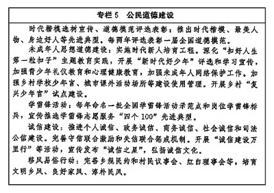 傳承弘揚中華傳統(tǒng)美德,加強社會公德、職業(yè)道德、家庭美德、個人品德建設(shè),加強家庭、家教、家風(fēng)建設(shè)。加強對革命、建設(shè)、改革時期各類先進典型的學(xué)習(xí)宣傳,尊崇褒揚英雄模范,關(guān)心關(guān)愛先進典型人物。健全家庭、學(xué)校、政府、社會相結(jié)合的思想道德教育體系,把立德樹人貫穿學(xué)校教育全過程。發(fā)揮優(yōu)秀文化產(chǎn)品陶冶道德情操的作用,完善市民公約、鄉(xiāng)規(guī)民約、學(xué)生守則、團體章程等社會規(guī)范,廣泛開展弘揚時代新風(fēng)行動,深化道德領(lǐng)域突出問題治理。加強農(nóng)村思想道德建設(shè),創(chuàng)新文化科技衛(wèi)生“三下鄉(xiāng)”長效機制。