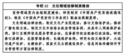 ——中國特色社會主義文化制度更加完善,文化法律法規(guī)體系和政策體系更加健全,文化治理效能進一步提升。