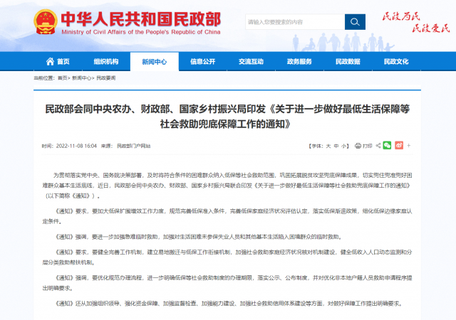四部門:進(jìn)一步做好最低生活保障等社會(huì)救助兜底保障工作