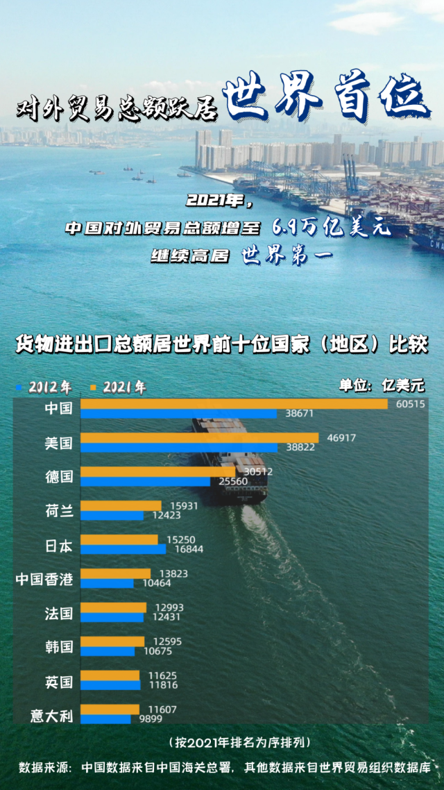 2020年中國(guó)對(duì)外貿(mào)易總額由2012年的4.4萬億美元升至5.3萬億美元,首超美國(guó)成為全球第一大貿(mào)易國(guó)。2021年,中國(guó)對(duì)外貿(mào)易總額加快上升增至6.9萬億美元,繼續(xù)高居世界第一。在經(jīng)濟(jì)全球化頻遭單邊主義、保護(hù)主義等“逆流”襲擾的歷史當(dāng)口,中國(guó)從融入和適應(yīng)全球化走向推動(dòng)和引領(lǐng)全球化,積極倡導(dǎo)建設(shè)開放型世界經(jīng)濟(jì),推動(dòng)經(jīng)濟(jì)全球化朝著更加開放、包容、普惠、平衡、共贏方向發(fā)展。目前,中國(guó)已成為140多個(gè)國(guó)家和地區(qū)的主要貿(mào)易伙伴,形成更大范圍、更寬領(lǐng)域、更深層次對(duì)外開放格局。