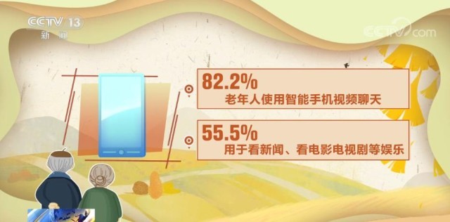 數(shù)字化對(duì)老年人生活的影響將激增。65—69歲老人使用智能手機(jī)的占比超過五成。百歲及以上老人仍有1.3%使用智能手機(jī)。82.2%老年人使用智能手機(jī)視頻聊天,55.5%用于看新聞、看電影、電視劇等娛樂。