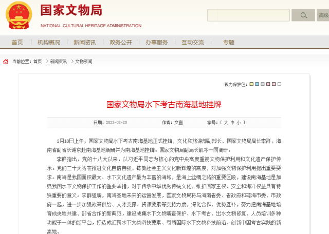 文化和旅游部副部長(zhǎng)、國(guó)家文物局局長(zhǎng)李群表示,南海是我國(guó)面積最大、水下文化遺產(chǎn)最為豐富的海域,是海上絲綢之路的重要區(qū)段。國(guó)家文物局將努力把南海基地培育成央地共建、部省合作的新典范,建設(shè)成集水下文物調(diào)查保護(hù)、水下考古、出水文物修復(fù)、人員培訓(xùn)多種功能于一體的新平臺(tái),打造成匯聚水下文物科技要素、引領(lǐng)世界水下文物科技前沿、創(chuàng)新中國(guó)考古實(shí)踐的新高地。