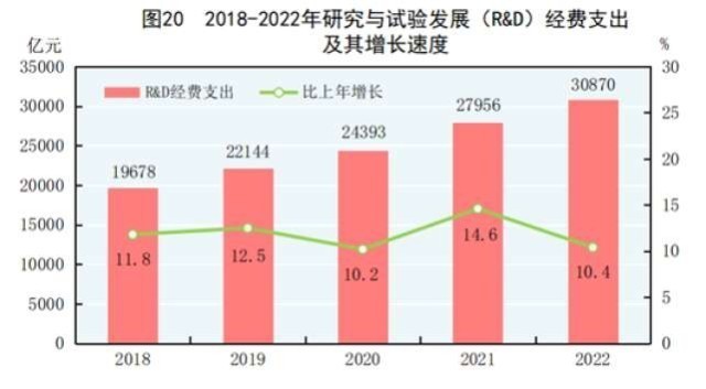 中國網(wǎng)財(cái)經(jīng)2月28日訊 國家統(tǒng)計(jì)局28日發(fā)布的2022年國民經(jīng)濟(jì)和社會(huì)發(fā)展統(tǒng)計(jì)公報(bào)顯示,2022年,全年研究與試驗(yàn)發(fā)展(R&D)經(jīng)費(fèi)支出30870億元,比上年增長10.4%,與國內(nèi)生產(chǎn)總值之比為2.55%,其中基礎(chǔ)研究經(jīng)費(fèi)1951億元。國家自然科學(xué)基金共資助5.19萬個(gè)項(xiàng)目。截至年末,正在運(yùn)行的國家重點(diǎn)實(shí)驗(yàn)室533個(gè),納入新序列管理的國家工程研究中心191個(gè),國家企業(yè)技術(shù)中心1601家,大眾創(chuàng)業(yè)萬眾創(chuàng)新示范基地212家。國家科技成果轉(zhuǎn)化引導(dǎo)基金累計(jì)設(shè)立36支子基金,資金總規(guī)模624億元。國家級(jí)科技企業(yè)孵化器1425家,國家備案眾創(chuàng)空間2441家。