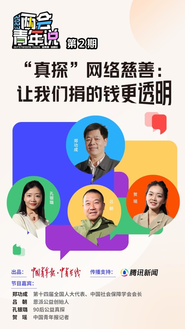 今天,她來到了《兩會青年說》節(jié)目現場,與參與《慈善法》修訂的全國人大代表鄭功成和公益組織創(chuàng)始人呂朝共同探討:如何讓我們捐的錢更透明?
