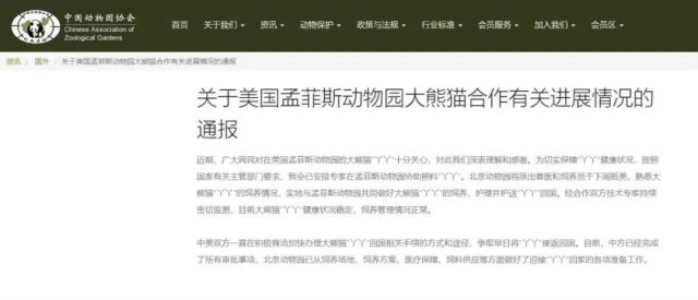 中國動物園協(xié)會網(wǎng)站發(fā)布通報稱,為切實保障在美國孟菲斯動物園的大熊貓“丫丫”健康狀況,按照國家有關主管部門要求,中國動物園協(xié)會已安排專家在孟菲斯動物園協(xié)助照料“丫丫”。北京動物園將派出獸醫(yī)和飼養(yǎng)員于下周抵美,熟悉大熊貓“丫丫”的飼養(yǎng)情況,實地與孟菲斯動物園共同做好大熊貓“丫丫”的飼養(yǎng)、護理并護送“丫丫”回國。經(jīng)合作雙方技術專家持續(xù)密切監(jiān)測,目前大熊貓“丫丫”健康狀況穩(wěn)定,飼養(yǎng)管理情況正常。