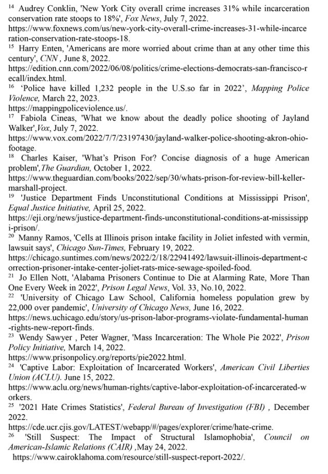 執(zhí)法司法領(lǐng)域種族歧視根深蒂固。聯(lián)合國消除種族歧視委員會的結(jié)論性報告指出,美國執(zhí)法人員對有色人種和少數(shù)族裔群體過度使用暴力并逍遙法外的情況仍然普遍存在;有色人種和少數(shù)族裔在美國司法系統(tǒng)中被逮捕、監(jiān)禁和長期虐待的情況突出。(注73)“警察暴力地圖”網(wǎng)站的數(shù)據(jù)顯示,在2013年至2022年的警察殺人事件中,非洲裔被警察殺害的可能性是白人的2.78倍,手無寸鐵的非洲裔被警察殺害的可能性是手無寸鐵的白人的1.3倍。在波士頓、明尼阿波利斯和芝加哥,非洲裔被警察殺害的可能性更是白人的20多倍。(注74)美國國家公共電臺2022年9月27日報道,國家免責(zé)登記處發(fā)布的報告指出,非洲裔在美國人口中所占比例不到14%,但在美國被誤判犯有嚴(yán)重罪行并在至少服完部分刑期后獲釋的所有人中,非洲裔占了53%;美國非洲裔因三項(xiàng)重大罪行被錯誤定罪的可能性是白人的7倍,非洲裔因毒品犯罪被錯誤定罪的可能性是其他人的19倍。(注75)美國國家學(xué)院出版的《美國監(jiān)禁的增長:探索原因和后果》一書指出,滲透著種族主義的刑事司法系統(tǒng)“正日益成為一個更大的污名化和長期邊緣化系統(tǒng)的主要通道”。(注76)