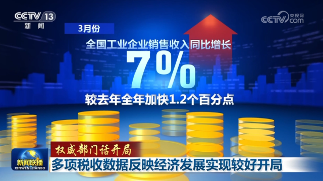 央視網(wǎng)消息(新聞聯(lián)播):在國新辦今天(4月6日)舉行的“權(quán)威部門話開局”系列主題新聞發(fā)布會上,國家稅務(wù)總局負(fù)責(zé)人表示,多項稅收數(shù)據(jù)反映出我國經(jīng)濟(jì)發(fā)展實現(xiàn)了較好開局。