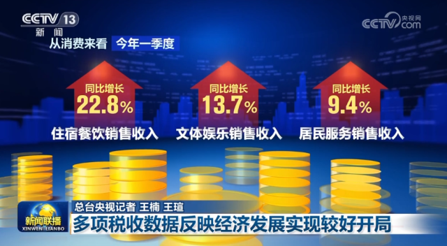 從消費來看,一季度,住宿餐飲、文體娛樂、居民服務(wù)等銷售收入同比分別增長22.8%、13.7%和9.4%,回升較為明顯,潛力加快釋放。
