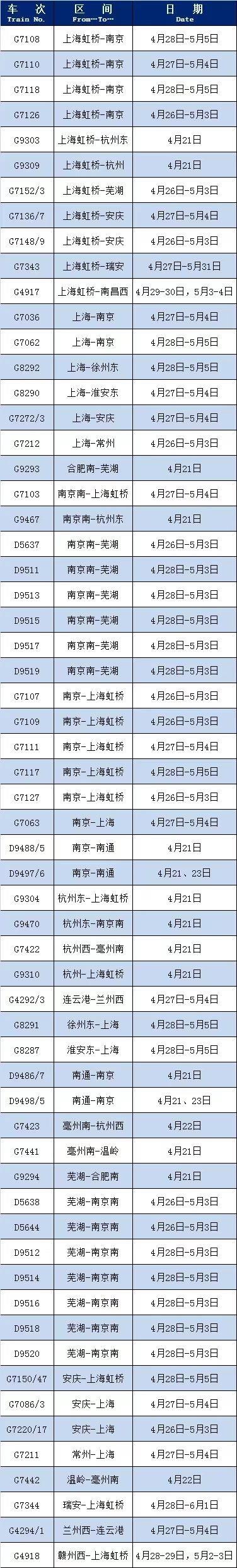 長(zhǎng)三角鐵路五一假期增開(kāi)多趟列車 詳細(xì)車次公布