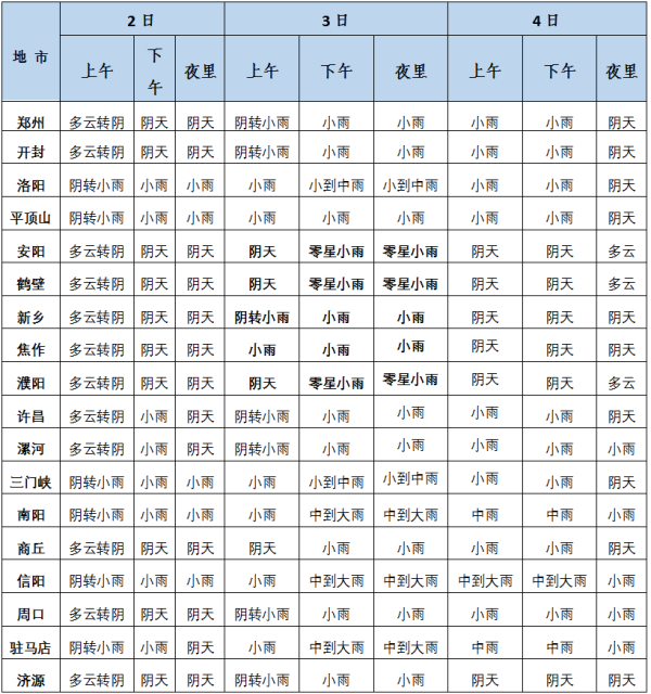 根據(jù)預報,此次過程降水時段集中在3日下午到4日白天,過程累計降水量西南部、南部20到40毫米,部分縣市50到80毫米,中部偏南地區(qū)15到20毫米。黃河以南其他地區(qū)有小到中雨,降水量5到15毫米。新鄉(xiāng)、焦作、濟源有陣雨,降水量2到5毫米。安陽、鶴壁、濮陽以多云為主,有分散性小陣雨。