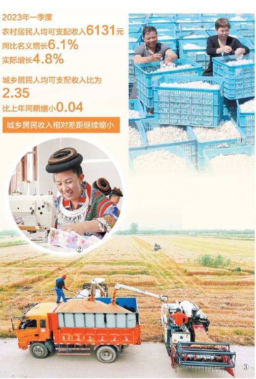 國家統(tǒng)計(jì)局發(fā)布的數(shù)據(jù)顯示,去年農(nóng)村居民人均可支配收入首次邁上2萬元這個(gè)新臺(tái)階,城鄉(xiāng)居民收入相對差距持續(xù)縮小。今年一季度,農(nóng)村居民人均可支配收入繼續(xù)保持增長勢頭,同比名義增長6.1%,實(shí)際增長4.8%,比去年全年提高0.6個(gè)百分點(diǎn)。