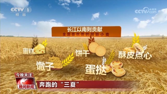 再向南看,與北方高筋、中筋小麥相對應(yīng)的,長江以南則貢獻(xiàn)了全國最優(yōu)質(zhì)的弱筋小麥,是蛋糕、餅干、馓子、蛋撻、酥皮點(diǎn)心等面食小吃的重要原料。