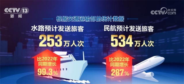 端午假期,全國(guó)鐵路、公路、水路、民航預(yù)計(jì)共發(fā)送旅客14047萬人次,比2022年同期增長(zhǎng)89.1%。其中,鐵路預(yù)計(jì)發(fā)送旅客4326萬人次,比2022年同期增長(zhǎng)150.2%;公路預(yù)計(jì)發(fā)送旅客8934萬人次,比2022年同期增長(zhǎng)64.4%;水路預(yù)計(jì)發(fā)送旅客253萬人次,比2022年同期增長(zhǎng)99.3%;民航預(yù)計(jì)發(fā)送旅客534萬人次,比2022年同期增長(zhǎng)287%。