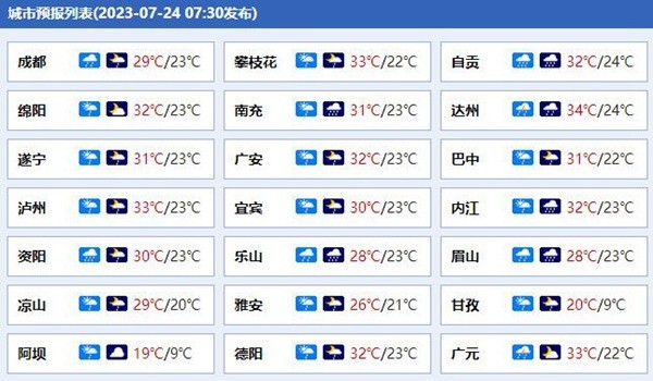 四川各城市預(yù)報(bào)。(來(lái)源:中國(guó)天氣網(wǎng))