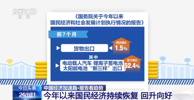 報(bào)告指出,前7個(gè)月貨物出口同比增長(zhǎng)1.5%,其中電動(dòng)載人汽車、鋰離子蓄電池、太陽(yáng)能電池“新三樣”出口合計(jì)增長(zhǎng)52.4%。知識(shí)密集型服務(wù)貿(mào)易較快增長(zhǎng),旅行服務(wù)貿(mào)易明顯恢復(fù),上半年服務(wù)進(jìn)出口同比增長(zhǎng)8.5%。推動(dòng)外資標(biāo)志性項(xiàng)目落地實(shí)施,外貿(mào)外資平穩(wěn)發(fā)展。