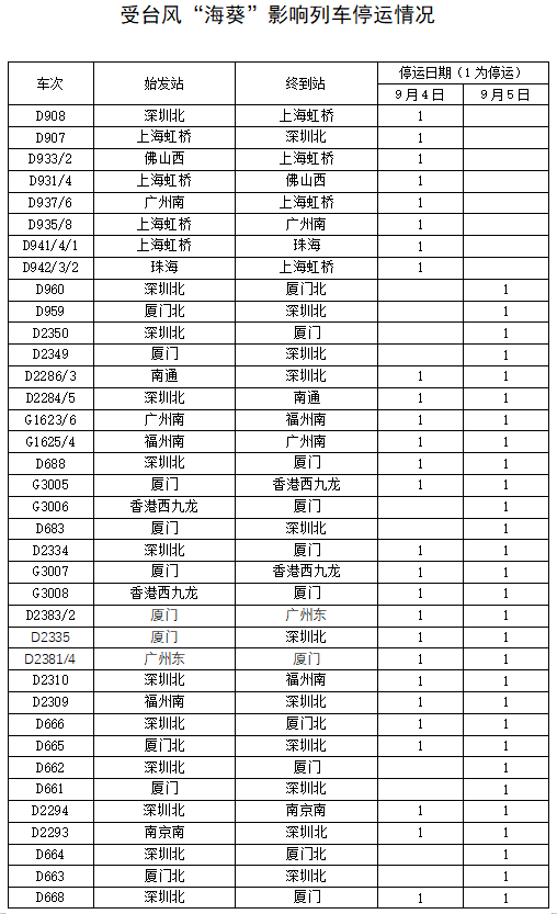 受臺(tái)風(fēng)“??庇绊?鐵路部門停運(yùn)途經(jīng)杭深鐵路部分旅客列車