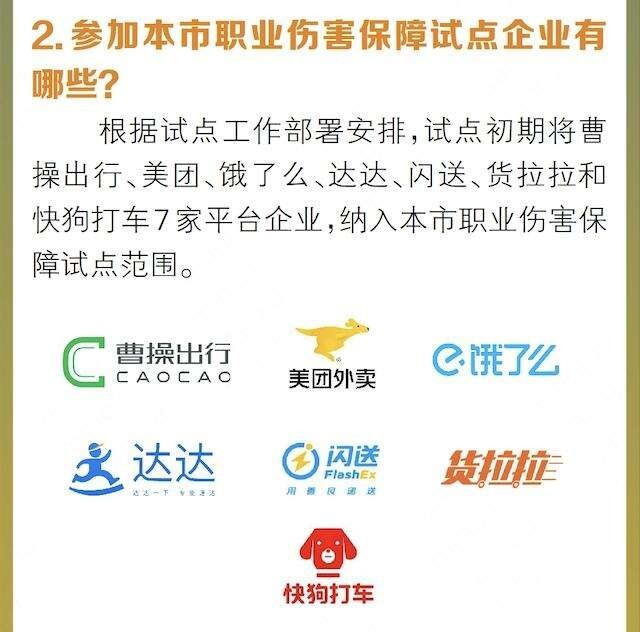 據(jù)了解,“新型社保”試點(diǎn)從去年7月1日啟動(dòng)實(shí)施,第一批試點(diǎn)在曹操出行、美團(tuán)、餓了么、達(dá)達(dá)、閃送、貨拉拉、快狗打車7家平臺(tái)企業(yè),在全國7個(gè)省市開展。