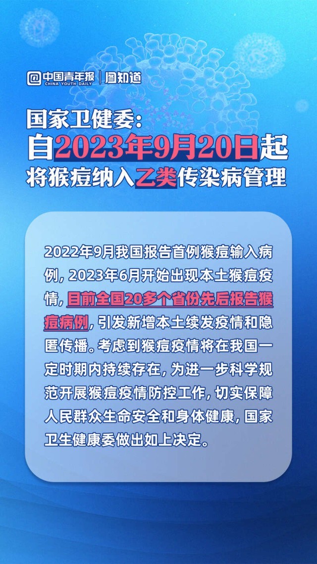 - 國家衛(wèi)健委將猴痘納入乙類傳染病管理
