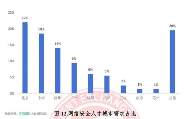 根據(jù)國家智慧教育公共服務(wù)平臺數(shù)據(jù),2023年網(wǎng)絡(luò)安全相關(guān)本科專業(yè)(信息安全、網(wǎng)絡(luò)空間安全、網(wǎng)絡(luò)安全與執(zhí)法)畢業(yè)生規(guī)模約為 1.45 萬人。總體上,網(wǎng)絡(luò)安全產(chǎn)業(yè)人才供需關(guān)系為供不應(yīng)求?!秷蟾妗贩Q,根據(jù)拉勾招聘平臺數(shù)據(jù)顯示,最新網(wǎng)絡(luò)安全人才需求排名前六的城市分別是北京、上海、深圳、廣州、成都和杭州,占據(jù)市場總需求的75%左右。