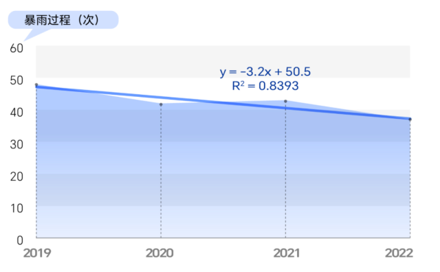 數(shù)據(jù)統(tǒng)計(jì)顯示,2012年至2022年,我國暴雨發(fā)生次數(shù)走勢振蕩,并沒有較為明顯的增加趨勢。并且自2019年以來,我國暴雨發(fā)生次數(shù)還有緩慢減少的趨勢。