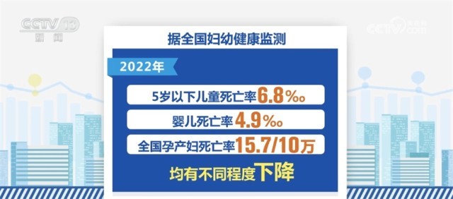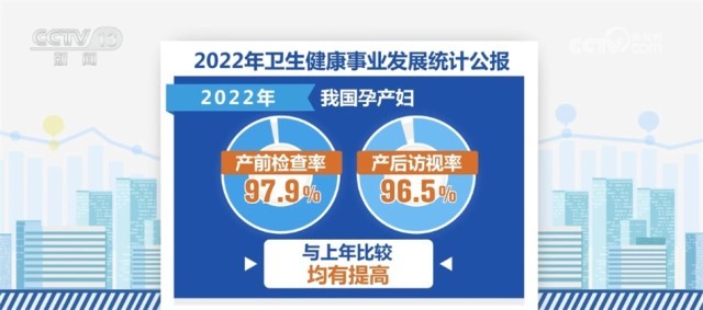 在婦幼健康方面,2022年我國孕產(chǎn)婦產(chǎn)前檢查率97.9%,產(chǎn)后訪視率96.5%。與上年比較,產(chǎn)前檢查率和產(chǎn)后訪視率均有提高。2022年全國住院分娩率為99.94%,基本實(shí)現(xiàn)全部住院分娩。據(jù)全國婦幼健康監(jiān)測(cè),2022年,我國5歲以下兒童死亡率6.8‰,嬰兒死亡率4.9‰,全國孕產(chǎn)婦死亡率為15.7/10萬,均有不同程度下降。