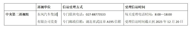 日前,二十屆中央第二輪巡視的15個(gè)巡視組陸續(xù)進(jìn)駐被巡視單位黨組織開展巡視工作。截至目前,中央巡視組已進(jìn)駐東風(fēng)汽車集團(tuán)有限公司,并公布了信訪聯(lián)系方式。