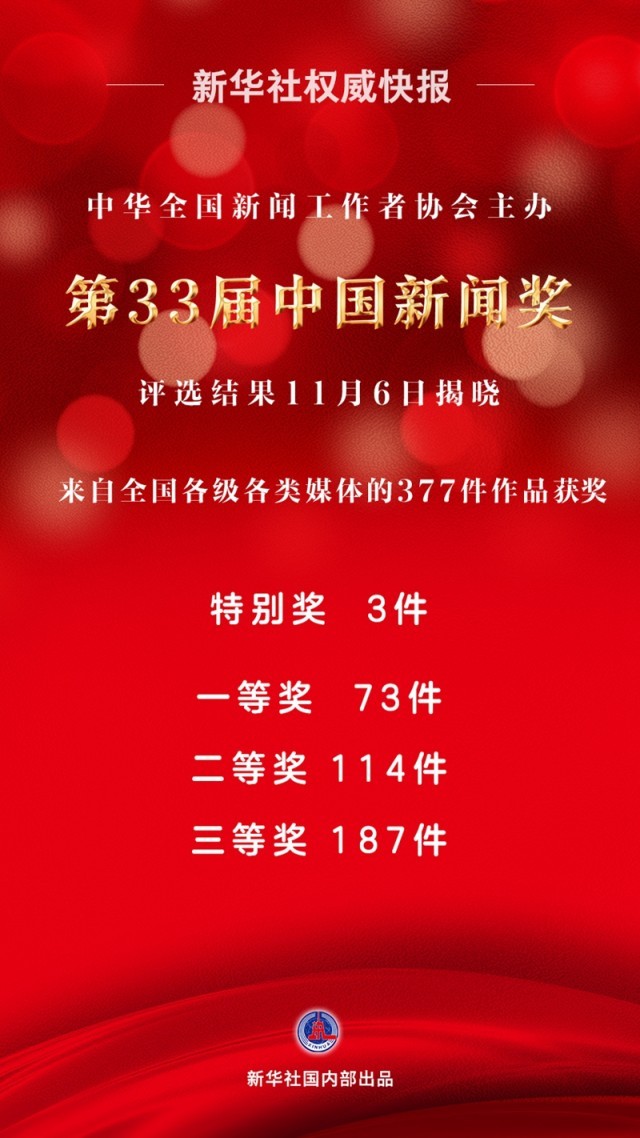 由中華全國新聞工作者協(xié)會(huì)主辦的第33屆中國新聞獎(jiǎng)評(píng)選結(jié)果11月6日揭曉。