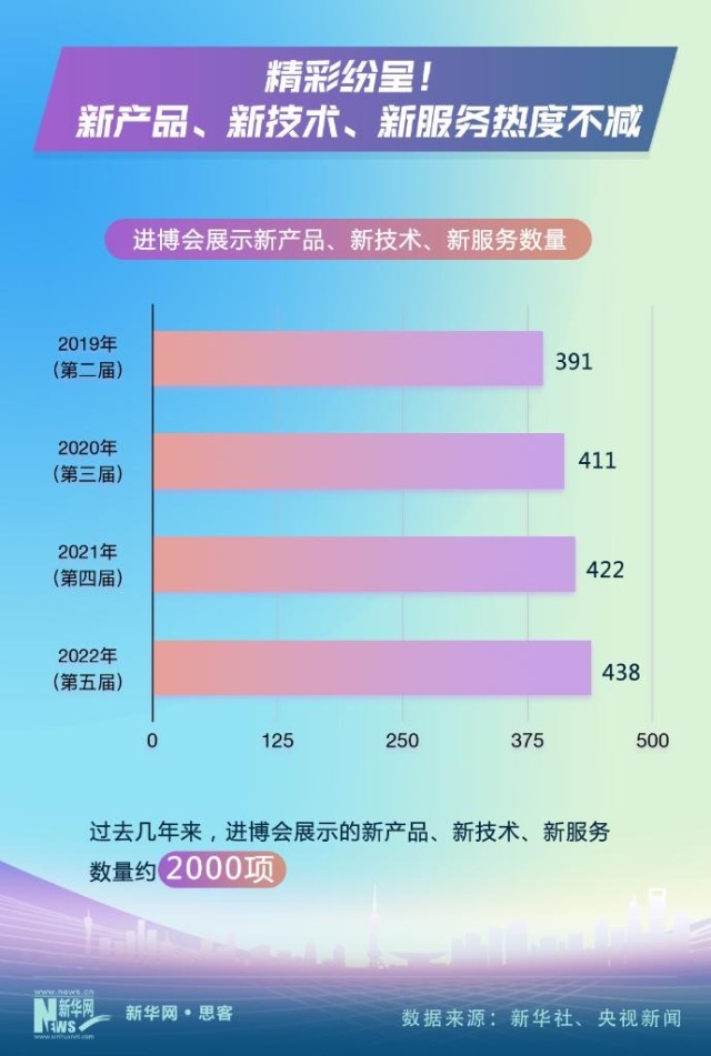 每年進博會,各種新產(chǎn)品、新技術、新服務的亮相總能吸引參會者的眼球。數(shù)據(jù)顯示,過去幾年來,進博會展示的新產(chǎn)品、新技術、新服務數(shù)量約2000項,歷屆的數(shù)量呈逐年遞增的態(tài)勢。另一方面,參展產(chǎn)品、技術、服務不斷迭代升級,多種先進醫(yī)療器械、創(chuàng)新藥、能源低碳設備、智能工業(yè)裝備、新能源汽車、高科技美妝產(chǎn)品、高品質(zhì)食品等也在本屆進博會上進行全球首發(fā)、亞洲首秀、中國首展。