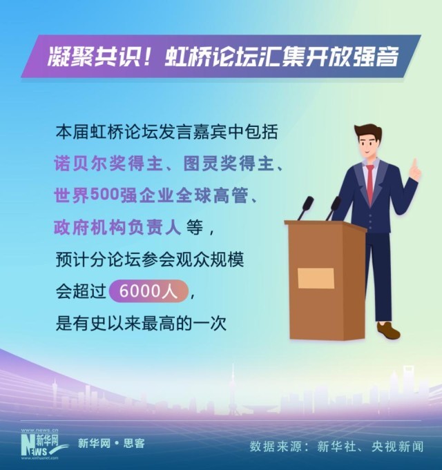 虹橋國際經(jīng)濟論壇是中國國際進口博覽會的重要組成部分。隨著進博會的“朋友圈”越來越大,虹橋論壇的影響力也不斷提升。今年的論壇以“攜手促發(fā)展,開放贏未來”為主題,發(fā)言嘉賓中包括了諾貝爾獎得主、圖靈獎得主、世界500強企業(yè)全球高管、政府機構負責人等等,預計分論壇參會觀眾規(guī)模也會超過6000人,是有史以來最高的一次。