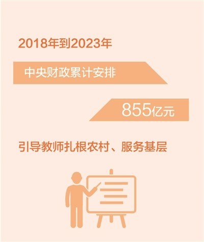 2018年到2023年 中央財(cái)政累計(jì)安排855億元引導(dǎo)教師扎根農(nóng)村、服務(wù)基層
