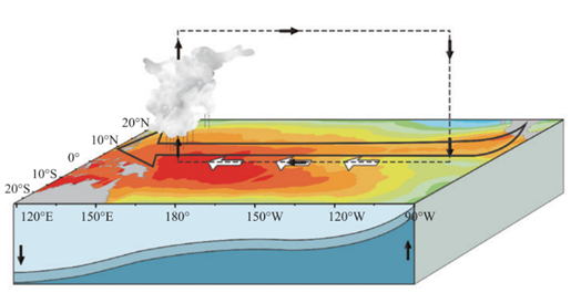 正常情況下,赤道西太平洋是大片的暖水區(qū),其面積相當(dāng)于我國陸地面積的兩倍多,而東太平洋是一片冷水區(qū)。但在一些年份,原本堆積在西太平洋的暖海水會往東蔓延,使得赤道中東太平洋海溫持續(xù)異常升高;而另一些年份,赤道中東太平洋冷水區(qū)范圍擴(kuò)大,海水變得更冷。當(dāng)赤道中東太平洋海溫出現(xiàn)這種異常現(xiàn)象,就有可能發(fā)生厄爾尼諾或拉尼娜。
