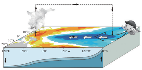 熱帶太平洋海洋大氣狀態(tài)示意圖(暖色系代表海溫偏暖,冷色系代表海溫偏冷,顏色越深,偏暖/冷的程度越大,圖片引自《中國氣候》,氣象出版社)