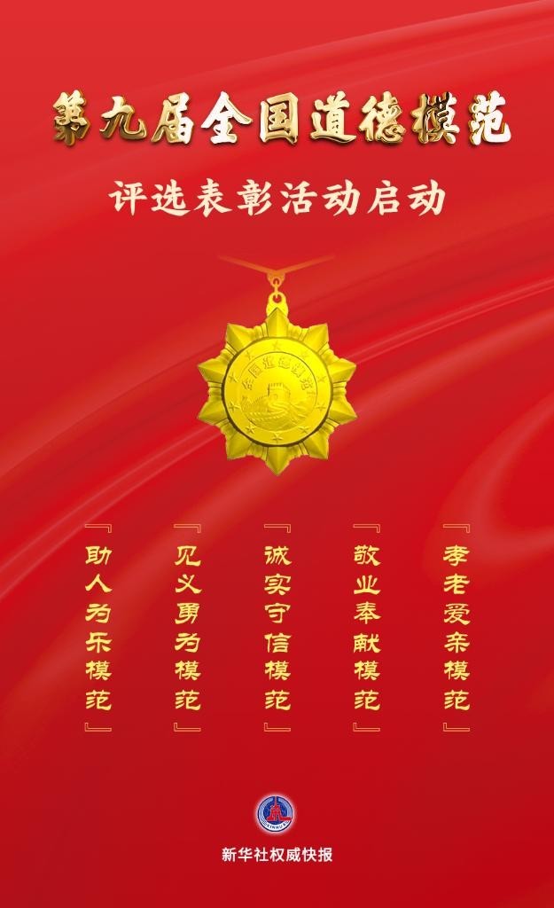 據(jù)悉,第九屆全國道德模范分為“助人為樂模范”“見義勇為模范”“誠實守信模范”“敬業(yè)奉獻模范”“孝老愛親模范”5個類別,通過群眾推薦、遴選審核、公示宣傳、投票評選等步驟評選產(chǎn)生。