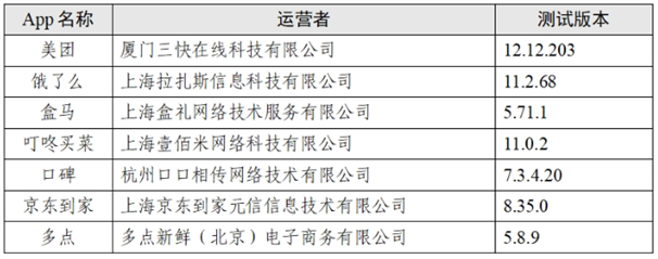 本次測試中國網(wǎng)絡(luò)空間安全協(xié)會選取了19家應(yīng)用商店累計(jì)下載量達(dá)到1億次的“餐飲外賣類”App,共計(jì)7款。