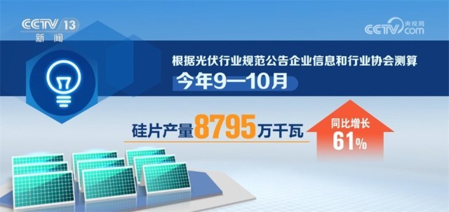 央視網消息:工業(yè)和信息化部昨天(12月13日)發(fā)布當前全國光伏制造行業(yè)最新運行情況。數(shù)據(jù)顯示,今年9—10月,我國光伏制造業(yè)保持高位運行,硅料、硅片、電池、組件產量同比增長均超60%。