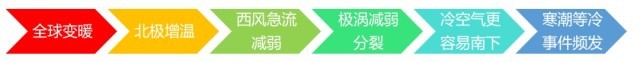 赤道與極地之間存在巨大溫差,這種差異促使極圈外圍形成了一圈強(qiáng)勁的西風(fēng),環(huán)繞在極地周圍,它被稱之為西風(fēng)急流。西風(fēng)急流就像“圍欄”一樣,約束著極地的冷空氣。穩(wěn)定的極渦被強(qiáng)大的西風(fēng)急流限制在北極地區(qū),在全球變暖背景下,北極地區(qū)增溫速度是全球的2-3倍。北極地區(qū)增溫,與中低緯度氣溫差減弱,難以維持強(qiáng)大的西風(fēng)急流,極渦內(nèi)的冷空氣變得“躁動(dòng)不安”,更容易分裂南下。北極來(lái)的冷空氣,其溫度遠(yuǎn)遠(yuǎn)低于我們生活的中低緯度地區(qū),多次出現(xiàn)的寒潮天氣讓我們感到“冷冷冷”。