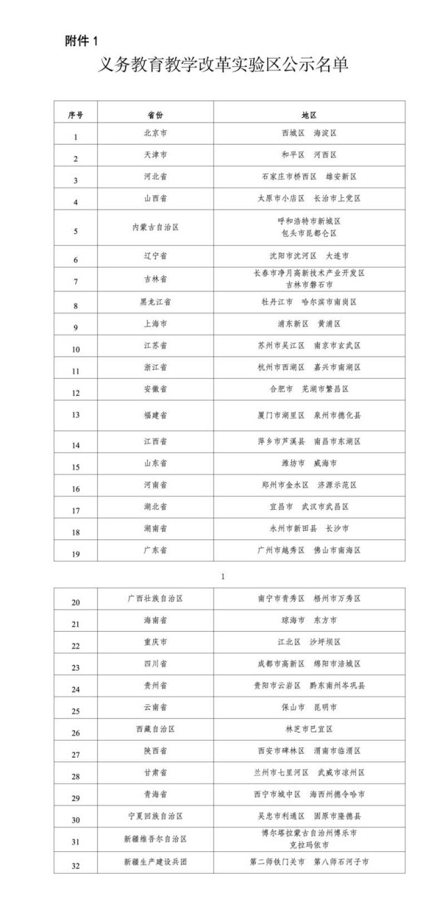 教育部公示義務(wù)教育教學(xué)改革63個(gè)實(shí)驗(yàn)區(qū)和189個(gè)實(shí)驗(yàn)校