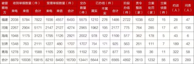截至2023年12月31日,各督察組共收到群眾來電、來信舉報19815件,受理有效舉報16700件,經(jīng)梳理合并重復舉報,累計向相關省轉辦13441件。相關省已辦結或階段辦結11457件。其中,立案處罰1232家,立案偵查55件;約談黨政領導干部623人,問責黨政領導干部289人。