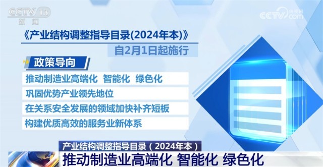 《產業(yè)結構調整指導目錄(2024年本)》自2月1日起施行。《目錄(2024年本)》的政策導向是,推動制造業(yè)高端化、智能化、綠色化,鞏固優(yōu)勢產業(yè)領先地位,在關系安全發(fā)展的領域加快補齊短板,構建優(yōu)質高效的服務業(yè)新體系。